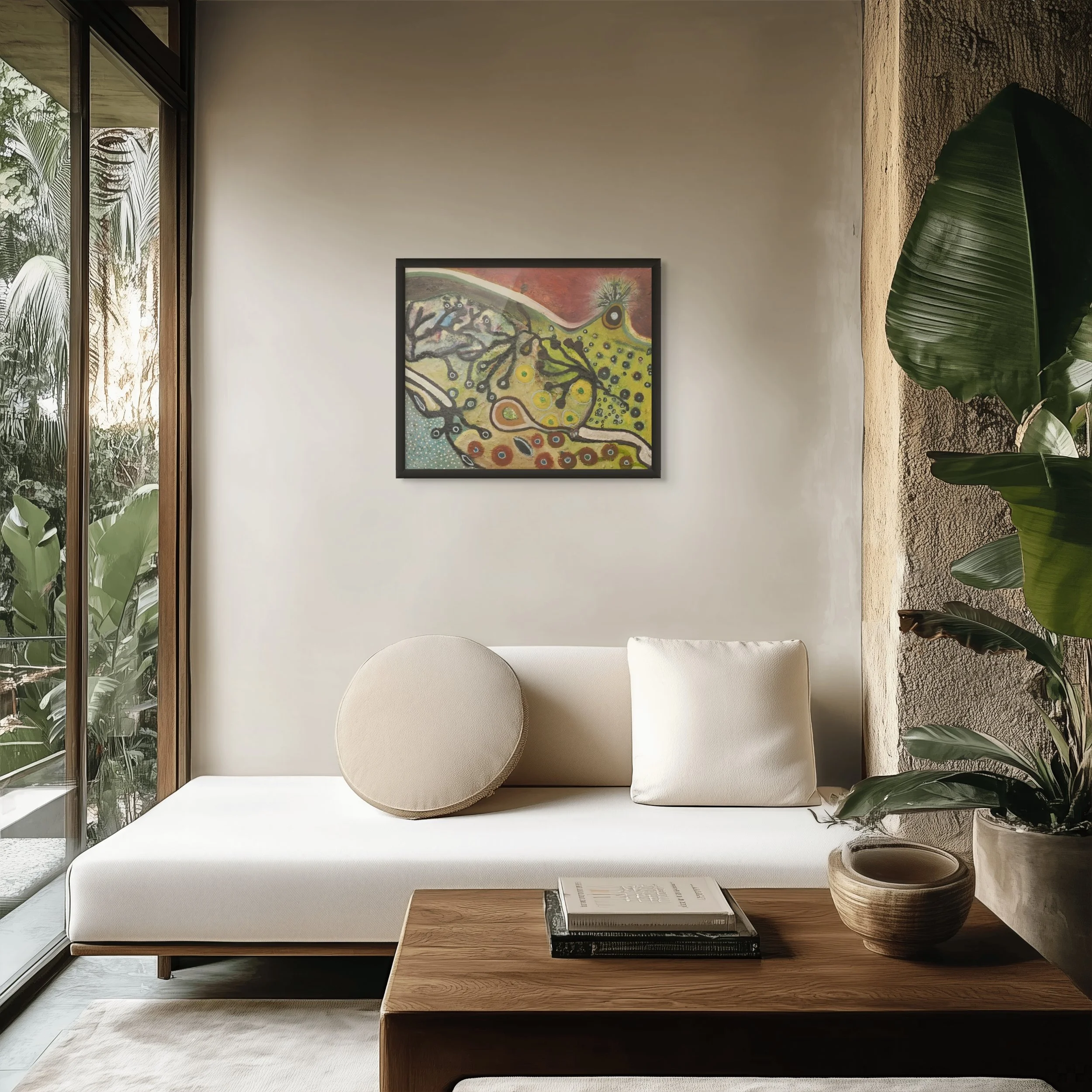 Rock pools are like landscapes in a puddle. They have their own hills, valleys and plants and creatures. Each pool has its own mood, eco system and order. I have a fascination of the patterns and textures in the form of these ancient rocks that sometimes reveal themselves depending on tides and storm. This piece is framed.