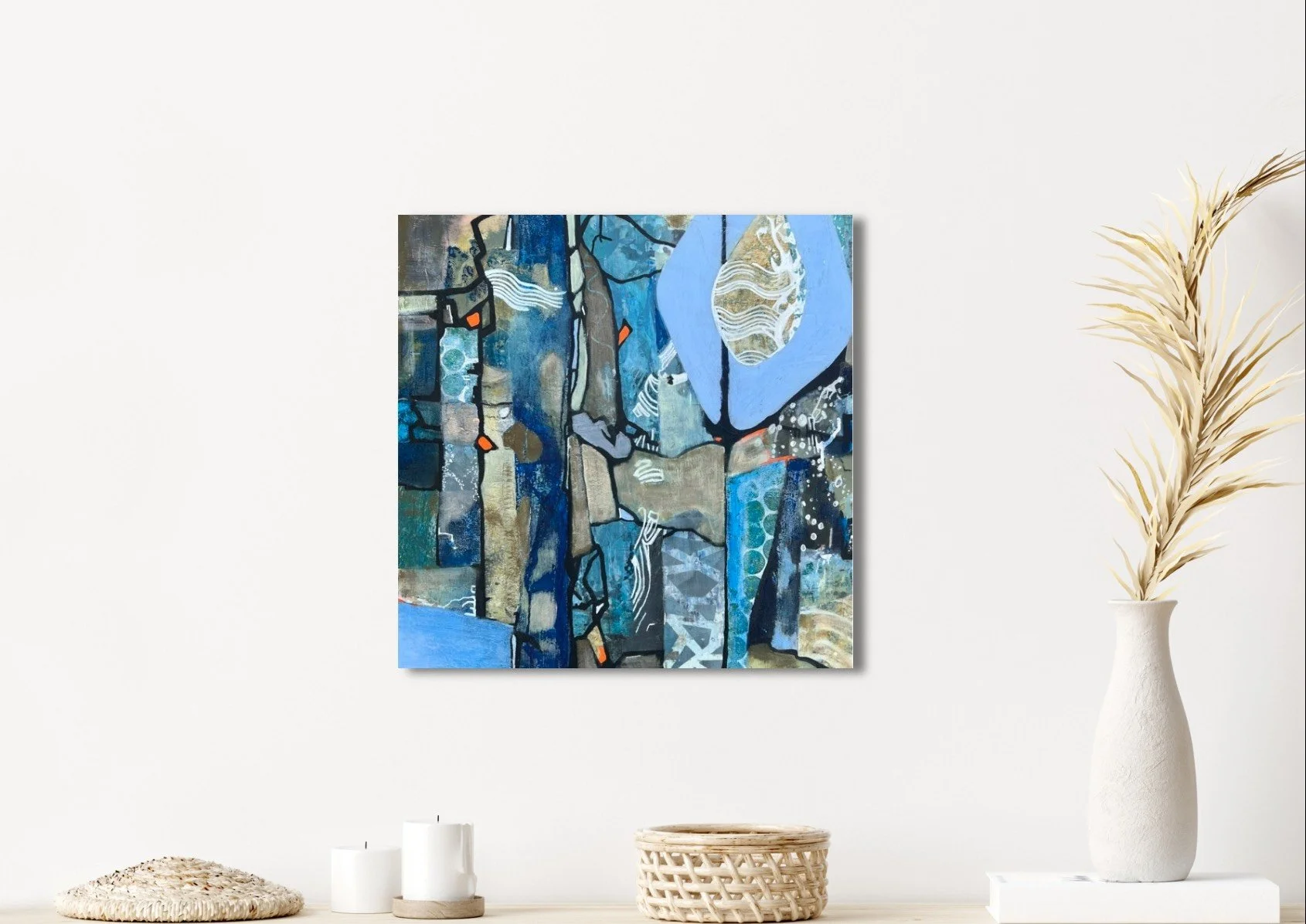 Mixed media on canvas.