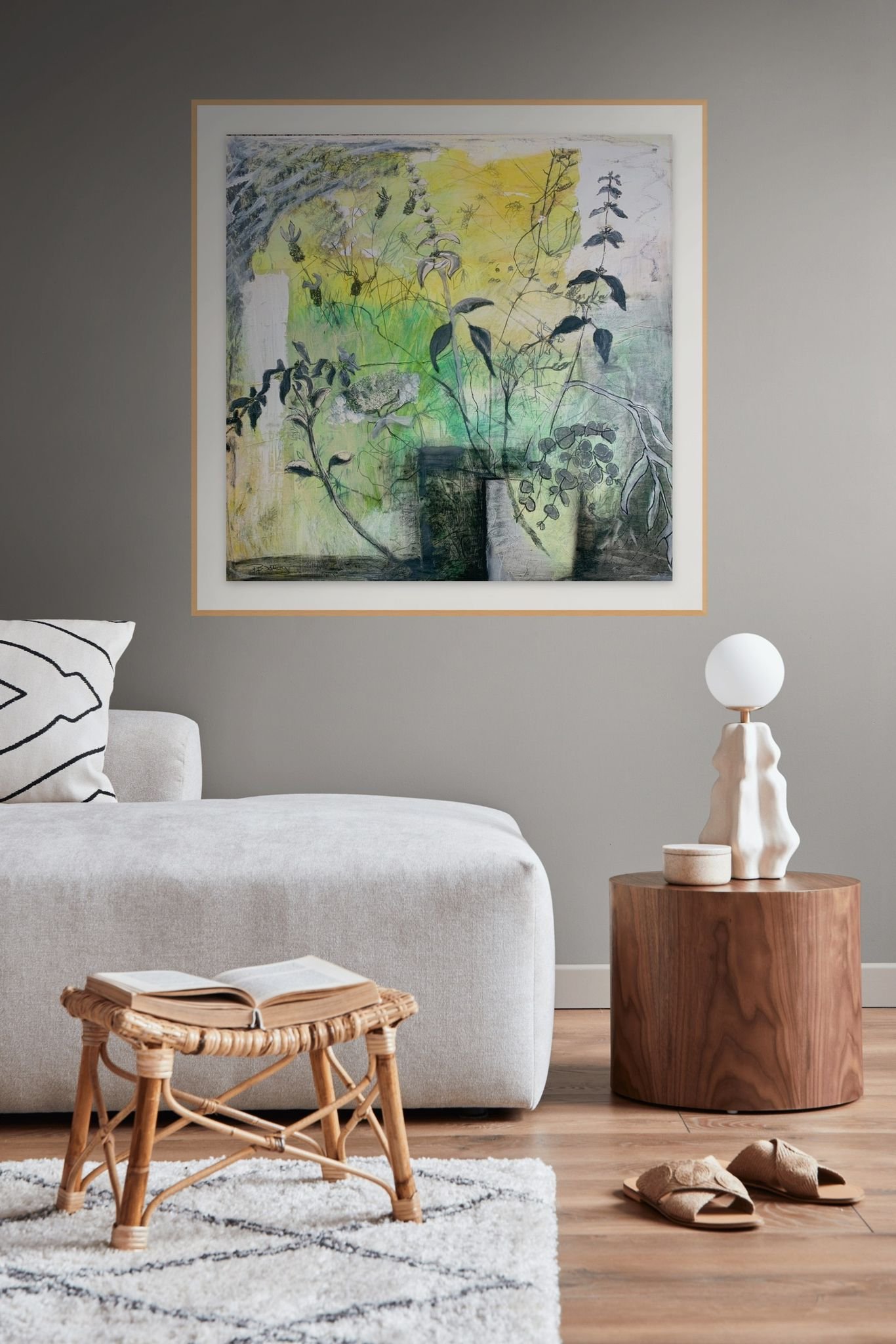 Mixed media on canvas. 100 x 100 x 2 cm (glazed and framed)